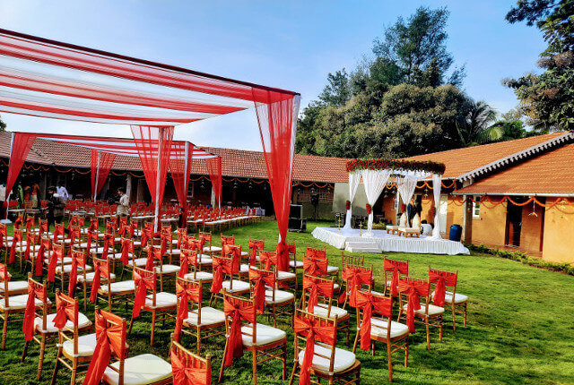 Swargha stage is strategically located under neem and sandalwood trees that highlights and enriches the mood for every auspicious occasion.